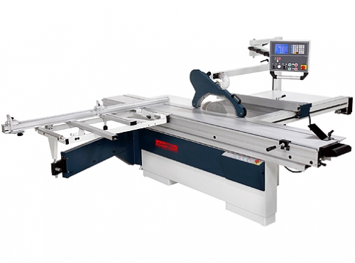 We are pleased to offer the new Cantek Model D405AE 1-axis 10′ sliding table tilting arbor, scoring panel saw. This machine, with great “fit and finish,” is equipped with a programmable rip fence having a maximum cutting width of 51″ by means of a precision ball screw. The adjustable overhead control panel will also display the angle of motorized tilt and control the motorized raise and fall of the blade. With a comprehensive standard equipment package this machine is priced very reasonably at $13,660.00 complete!