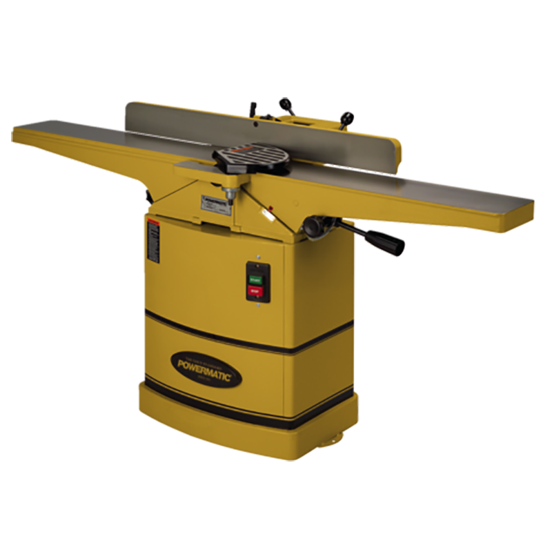 This 6″ Jointer features a helical cutterhead with 40 four-sided indexable carbide knife inserts – this design provides a superior finish and quieter operation compared to conventional cutterheads, and the inserts require no adjustment once they are installed. If a knife insert becomes nicked, simply rotate it for a fresh edge and continue working. Oversized infeed/outfeed tables are mounted on dovetailed ways. The fence is 38″ in length, with positive stops at 90° and 45° right and left. The fine/quick adjustment lever on the infeed table offers quick set-ups with precision controlled depth of cut. The heavy steel stand features a 1 HP motor with a non-slip v-belt drive for maximum performance. The 4″ dust port offers easy connection to any dust collection system.