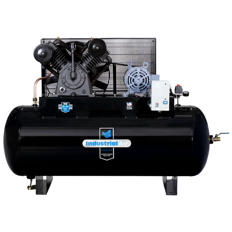 Industrial Air 10HP 3-phase 230v 120-gallon horizontal two-stage with Baldor motor with mag. starter
