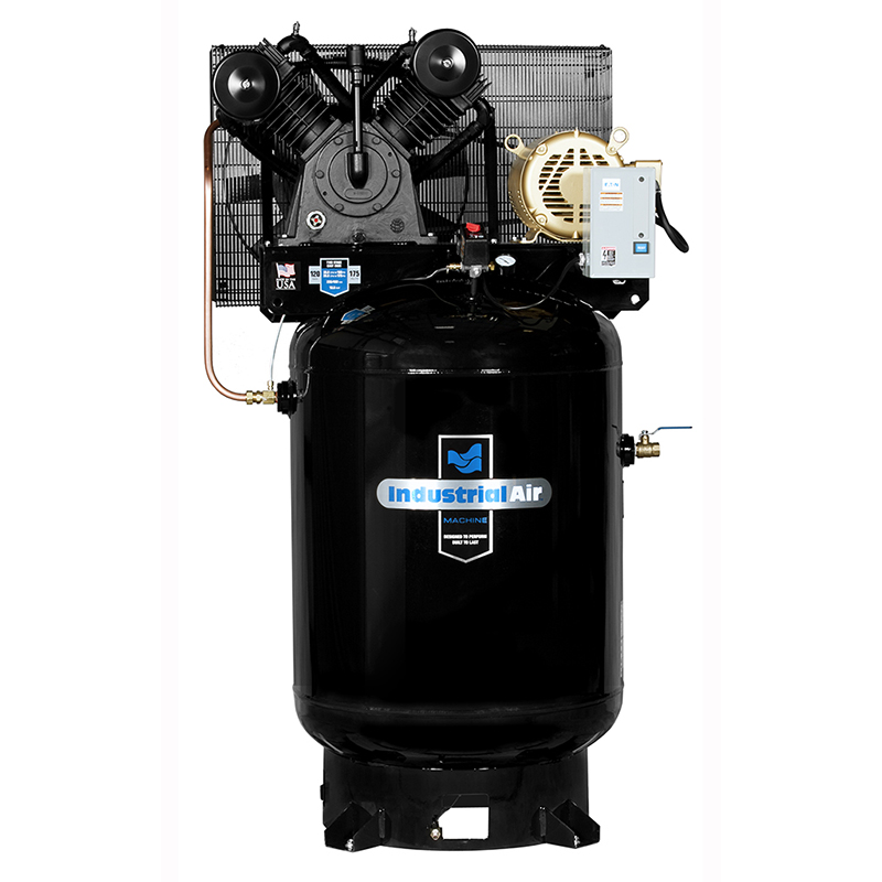 New Industrial Air 10HP, 3 phase, 460V, 120 Gallon Vertical Two Stage with Baldor motor, with magnetic starter.